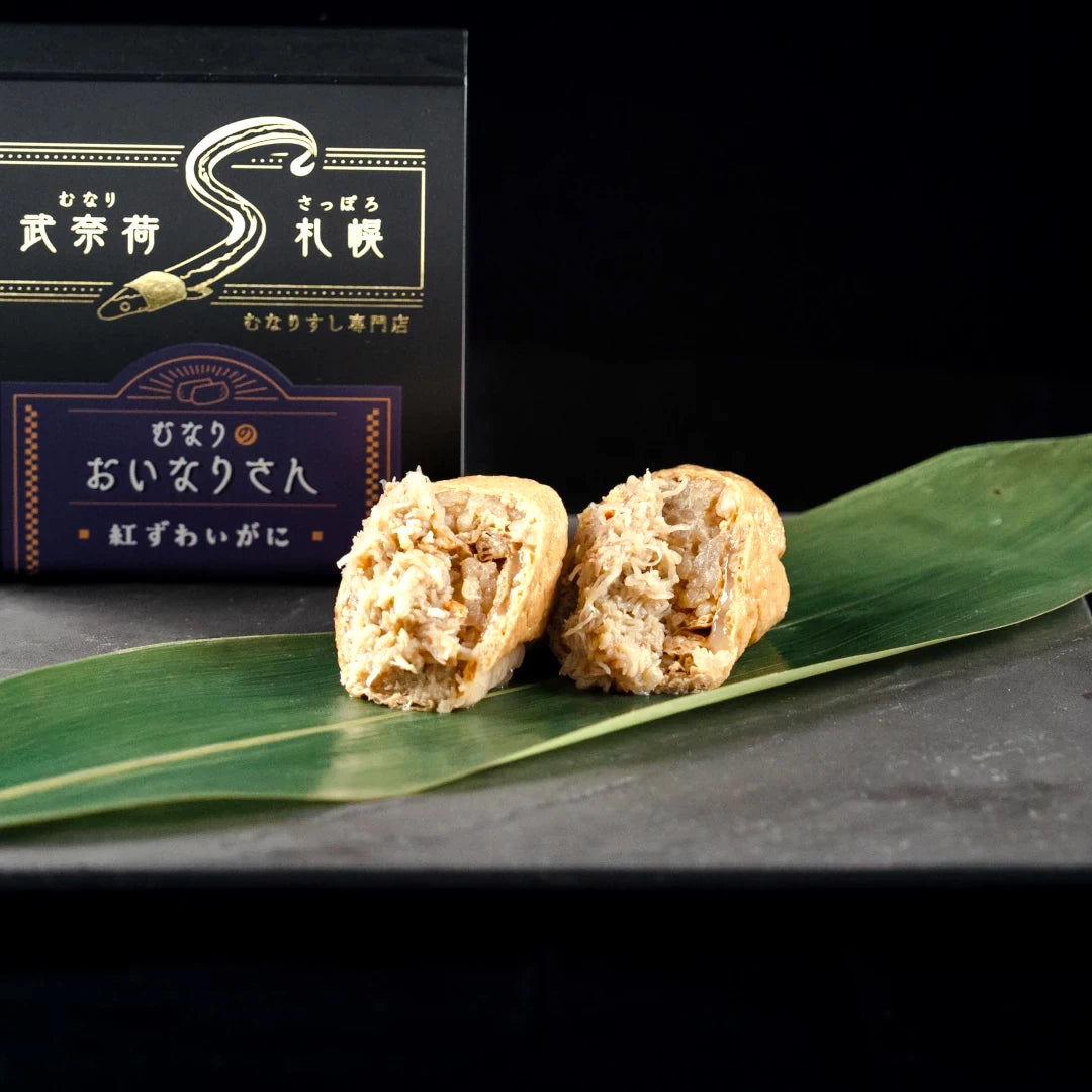 - 原材料名:米(北海道産)、油揚げ(大豆(北海道産))、紅ずわいがに(北海道産)、蟹味噌、醤油、ミリン、モチ米粉、白玉粉、食酢、テンサイ糖、バター、塩、酒、昆布、椎茸、鰹節/乳化剤、炭酸カルシウム、炭酸マグネシウム、ソルビトール、(一部にかに・小麦・大豆・乳成分を含む)